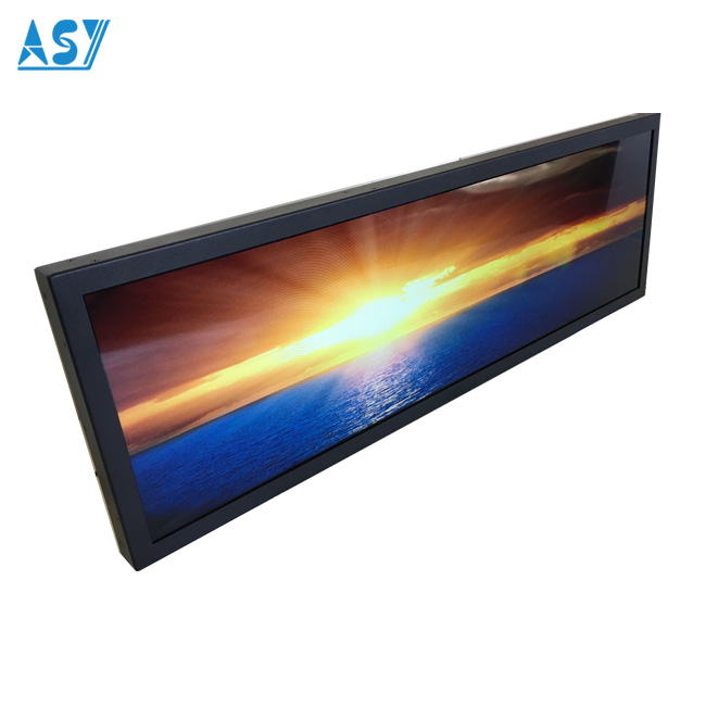 Bar type LCD displays widely used on bus, subway, train, shopping mall,elevator for video advertising. 28 Inch stretched display with high technology of LCD cutting, resize the high brightness TFT LCD screen. It supports sunlight readable,and working 7/24 hours.