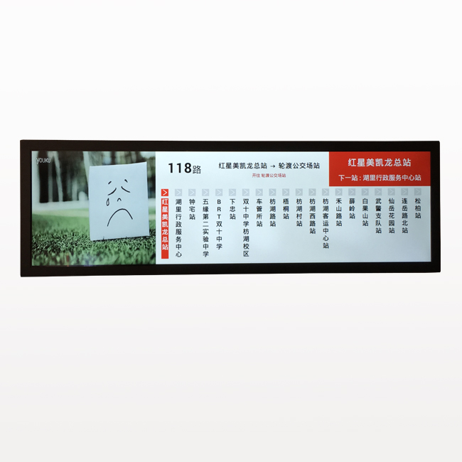 Con el desarrollo de la ciudad inteligente, se ha desarrollado ampliamente el sistema inteligente de autobuses y despacho, especialmente el lanzamiento de la personalización y aplicación de pantallas LCD tipo barra; es ampliamente utilizado en autobuses, metro, trenes, taxis y otros sistemas de transporte público y plataformas electrónicas;