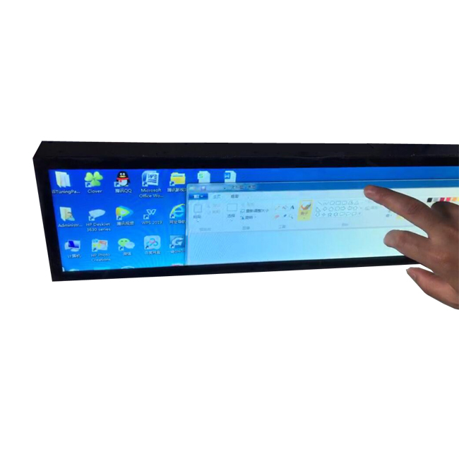 La relación de aspecto principal del panel LCD TFT en el mercado es 4: 3 o 16: 9. Pero para algunas aplicaciones, la forma de barra del panel de visualización sería mucho mejor que la corriente principal actual 4: 3 o 16: 9 para mostrar la información requerida. Con el desarrollo de la industria automotriz, cada vez más automóviles están equipados con un monitor de pantalla táctil ultra ancho. El monitor de pantalla táctil ultra ancha de 19.3 pulgadas es una dimensión perfecta para el montaje en el automóvil.